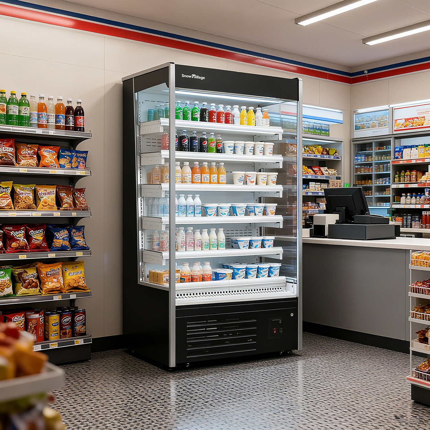 It adopts an air - cooled frost - free refrigeration method, featuring energy - saving and quiet operation. With 360 - degree circulating cold air, an enlarged and highly efficient refrigeration evaporation system enables rapid cooling. The in - cabinet air - duct circulation technology and open - type design make it convenient for customers to choose products. The integrated unit is easy to install, and multiple units can be spliced when used together, ensuring strong integrity.